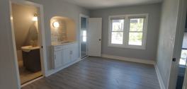 . New kitchen with all new White Euro-look cabinets with hook-up for a gas stove. (Tenants supply appliances).
