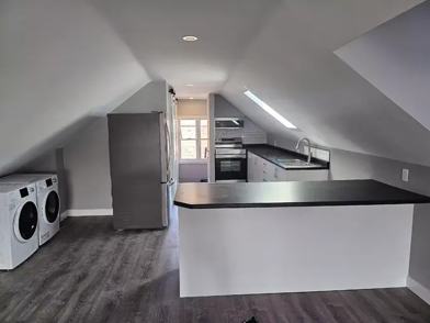 Brand new apartment with lots of daylight, modern style open concept kitchen with island or peninsula and barstools. In unit W/D, AC and baseboard heating. Lots of storage space. In the heart of Orillia. Bus stop in front of the door. 1 studio $1850.00 plus hydroParking available nearby for $60.00 a month Please contact for more details and to book a viewing.
