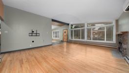 This renovated Mid Century home welcomes you with beautiful hardwood and slate tile flooring throughout. An open floor plan, large windows and vaulted ceilings makes this home airy and bright. Vibrant colors and modern upgrades add to the charm of this home. Spacious primary bedroom with attached ensuite bathroom with custom shower with rain shower. This home rounds out with two additional bedrooms, full bathroom and attached two car garage. The kitchen is equipped with modern stainless steel appliances including a gas range stove, in wall oven/microwave combo and the convenience of a washer/dryer included. Charming wood burning fireplace in living room for cold winter evenings.