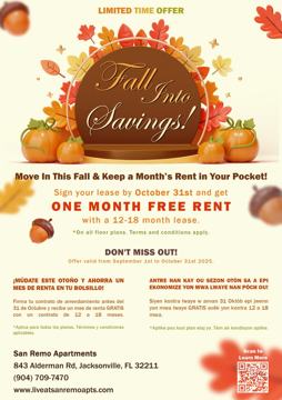 Ready to Make San Remo Apartments Your New Home? Apply online today and secure your spot! 👉 Apply Now: www liveatsanremoapts com application 📞 For more information and current pricing, call us at 904-689-8775. Amenities: Balcony or patio, central air, central heat, dishwasher, hardwood floors, stainless steel appliances, updated kitchen, updated bathroom, washer dryer, laundry in building, charming courtyards, picnic area, playground, and resort-style swimming pool. Pet-Friendly Security Deposit: $300 No Utilities Included *Prices are subject to change.