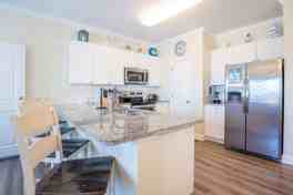 Up one level, will welcome you to an open concept living room, a fully equipped kitchen with granite countertops, and a traditional dining table that would work well as a desk if needed. Access to the front deck with outdoor furniture will be your favorite place for your morning quiet time, sipping your coffee.