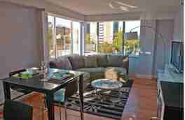 The spacious bedroom easily accommodates a king-size bed, and the huge balcony is ideal for patio furniture and BBQ grills. This luxury building includes a doorman, a free gym, a rooftop deck with barbecue grills, elevators, and a live-in super for added convenience.