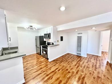 This charming 2-bedroom, 2-bathroom condo offers about 900 sq ft of thoughtfully designed living space. Featuring beautiful wood floors throughout, the unit boasts a modern kitchen with new appliances, creating a stylish yet comfortable environment. Ideally located in one of