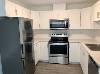 Appliances: Stainless steel fridge, electric stove, dishwasher, microwave and in-suite washer and dryer.