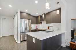 This beautiful unit features 1 BEDROOM AND A DEN. Built in 2016, located on the 3rd floor, this suite comes with stainless steel appliances, in-suite laundry, air conditioning, an electric fireplace, and a spacious 143 square foot private covered balcony overlooking a peaceful creekside forested view. Located within walking distance of numerous grocery and shopping options including Capilano Mall.