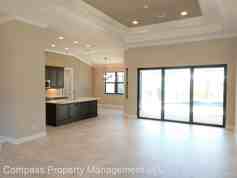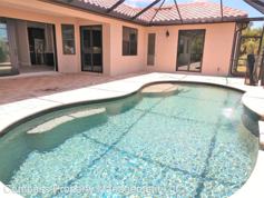 This Three bedroom, Two bath, Three car garage provides modern accents with just under 2100 square feet of beautiful designer touches throughout, extra high ceilings with ample natural light make this your home for your quiet enjoyment or grand entertaining. The spacious living area opens to the outdoor covered patio and lanai that overlooks the pool with an accent fountain feature. The Open-Concept kitchen features top-of-the-line Stainless Steel appliances, abundant stone counter tops and hardwood cabinets, an Island breakfast bar, open eat-in kitchen area, and lastly a formal dining area with designer light fixtures adding a touch of Tuscany. The master bedroom and spacious bath offers your own private retreat featuring dual sinks, elegant walk-in shower and two walk-in closets. Guest bedrooms offer a nice split plan for maximum privacy among all, with the guest bedroom sliders leading out to the paver patio and back yard.
