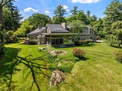 This striking five-bedroom contemporary home, set on more than 1.8 acres, seamlessly blends modern design with the natural beauty of its surroundings. With 6,400 square feet of living space, it’s ideally located next to miles of conservation land and trails—perfect for those seeking a private retreat in nature. Upon entering, you're greeted by a spacious foyer bathed in natural light from floor-to-ceiling windows. The open-concept living area features a gourmet kitchen that flows into the family room with vaulted ceilings and a wood-burning fireplace. The dining and living rooms offer ample space for entertaining, while a screened porch provides a peaceful outdoor escape. The first floor also includes a home office with a wet bar, four spacious bedrooms, and 3.5 baths. Upstairs, the master suite offers a large walk-in closet, a spa-like bath, and an adjacent exercise room. The lower level features a wine cellar and a large recreation room. Professionally landscaped gardens.
