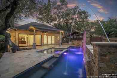Stunning gem located in Walker Ranch! This 1.5 story home has everything you need from soaring ceilings, separate office, formal dining, and a media room! Kitchen has granite countertops, gas cooking, stainless steel appliances, and large butcher block island. The living area has a floor to ceiling stone fireplace, built-in wood cabinets and large sliding glass doors open up the space and provide a stunning view of the waterfall and pool. Master is split with large windows and a view of the backyard. Master bath has tiled shower, garden tub, 2 separate vanities and a closet with organization bins. This home has crown molding, 11 ft. ceiling heights, and speakers throughout. The outdoor oasis features a covered patio area with travertine stone, an outdoor kitchen with a gas grill, sink, fridge, and ample countertop space for any party! The pool has a hot tub and water features!