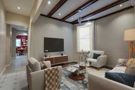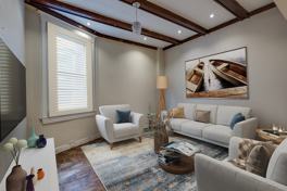 Located on a quite street this renovated apartment is a cozy oasis in a busy city.