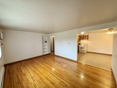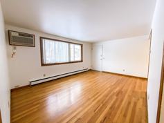 The 785-square-foot apartment includes, refrigerator, and hardwood flooring. Coin-based laundry is located in the basement. This unit can include up to one off-street parking space and is pet friendly for small and large cats and dogs.