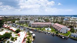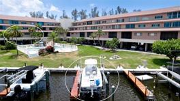 Take in the view of the sparkling heated community pool, spa and boat lift, just steps from your unit.