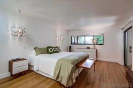 Black-out curtains in master bedroom. Both bedrooms have a sliding glass door to the patio. Blinds in both rooms. Beautiful art throughout.
