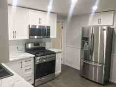 The home comes fully equipped with 5 appliances, including a washer and dryer, ensuring convenience from day one. The renovated bathroom features luxurious floor-to-ceiling marble tiling and a modern mirror, adding a touch of elegance to your daily routine.