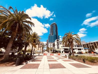 Relax or entertain on the expansive covered balcony, offering breathtaking views of Lake Eola Amphitheater and the glittering Orlando skyline—perfect for enjoying fireworks or the evening city lights.