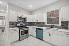 Second floor unit has three bedrooms and one full bath. This unit boosts gleaming hardwood floors in living rooms, bedrooms and hallways. High end gourmet kitchens complement the marble floors, custom white cabinets, attractive hardware, elegant quartz countertops, mosaic backsplashes, stainless steel appliance packages, pantries, separate furnaces/hot water tanks and washer/dryer hookups. Additional features include new windows, new front exterior door with marble foyer interior flooring, newly tuckpointed exterior, privacy fenced backyard, and landscaped to perfection. Ideal for summer activities and family entertainment.
