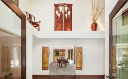 The stunning master suite upstairs includes a luxurious spa bath with a double shower, along with three additional bedrooms. A large home office with its own private entry, a wine cellar, and a versatile nanny suite or potential rental unit downstairs provide ample space and functionality for various needs.