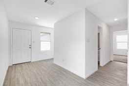 Discover a stunning single-story home in the highly sought-after Silos subdivision. This almost new property is move-in ready and boasts an open-concept layout with soaring ceilings, creating a spacious and inviting atmosphere. The main living areas feature luxury vinyl flooring, while the bedrooms are adorned with plush carpet for ultimate comfort. The kitchen is designed for both style and functionality, offering gas cooking, a refrigerator, microwave and a large peninsula that can also serve as bar stool seating. Step outside to a private oasis with no rear neighbors, providing peace and tranquility. Enjoy the community amenities, including a pool, playground, and clubhouse. With convenient access to Lackland AFB, the 151 Business Corridor, Sea World, and more, this home offers the perfect blend of comfort, convenience, and modern living.