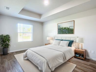 Step into modern living with this stunning new construction 3-bedroom, 2-bathroom single-family home for rent in Ocala. Built with quality and comfort in mind, this residence offers an open-concept floor plan with vaulted ceilings, sleek vinyl plank flooring throughout, and a spacious double-car garage.
