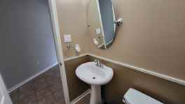 - Modern Kitchen: Well-equipped with stainless steel appliances (fridge/freezer, electric range, over-the-range microwave, and dishwasher), and a large sliding door leading to the backyard patio with serene views of the pond and green space.