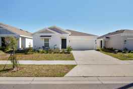 Welcome to Lawson Dunes in Haines City! This newly built 2024 home offers 3 bedrooms and 2 bathrooms and is move-in ready. As you enter, you'll be greeted by high ceilings and a long, inviting hallway with modern tile flooring that continues throughout the main living areas. Only the bedrooms feature carpet for added comfort. Just off the entry are the spacious second and third bedrooms, each with built-in closets and easy access to the full guest bathroom, which includes a solid-surface quartz countertop and a beautifully tiled shower. Further down the hall, the home opens into an impressive kitchen, living, and dining space. The kitchen features matching stainless-steel appliances, quartz countertops, modern light-gray cabinetry, and a large pantry. The living room offers direct access to the rear patio and a generously sized backyard through sliding glass doors. The primary suite is tucked just off the living area and includes a walk-in closet and an en-suite bathroom with dual sinks, matching cabinetry and quartz counters, and a tiled walk-in shower. On the opposite side of the living room is a spacious laundry room with washer/dryer hookups and access to the 2-car garage equipped with an automatic opener. The community also offers a playground for added convenience. Located off Johnson Avenue, this home is just minutes from the brand-new Publix plaza for easy shopping and dining. Call our office today to schedule your tour or for additional information!
