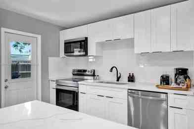 1400+ sqft fully furnished, professionally designed house in a quiet residential neighborhood of Pompano Beach.(can be rented unfurnished for $3,200) 2-king beds, 1 bunk bed, 2-bath, dishwasher, washer/dryer, open floor plan, abundance of natural light, TV 65" HDTV, fully equipped kitchen with stainless steel appliances, sleek countertops, ample storage space. The three bedrooms are tastefully furnished, each room features comfortable beds, soft linens, and storage space. The master bedroom has an en-suite bathroom, completed with a walk-in shower and modern fixtures. Dedicated workplace has a table & printer/scanner (on-demand). Spacious, private, fully fenced backyard with BBQ and table set. High speed wifi, many parking on premises including a spot for a boat. Pets allowed.