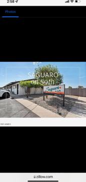 Saguaro on 59th Lane is in a quaint community, consisting of only 10 studio apartments. Each studio is very roomy for 450 sf, with vinyl plank flooring throughout, with a galley kitchen equipped with modern stainless-steel appliances (range, microwave, refrigerator), white cabinets including pantry, gray quartz countertops and white subway tile backsplash. Each apartment has a small private fenced patio. Bathroom is furnished with a tub/shower combo, single sink and toilet. The apartment has a nice sized walk-in closet, and linen shelving adjacent to the bathroom. Each unit has heating and air conditioning. There is off street parking at each unit (2 stalls available per unit). There is laundry facility on the property that is coin or app operated.