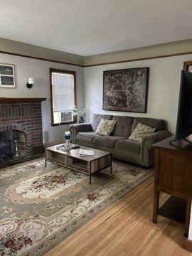 This is a furnished side of the duplex. 1900s classic charm with 2 beds - one queen and a twin. Well stocked kitchen for all your cooking needs and plenty of dining space.