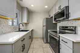 Beautifully remodeled home features 2 bedrooms, 2 bath with brand new kitchen. Includes new cabinets, new stainless steel appliances, new countertops. 1 car carport and back patio