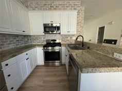 This beautiful unit in the desirable Riverbend Community is a large model with a multi-level open floor plan, plenty of windows, high vaulted ceilings and a modern feel! Newly converted downstairs bedroom room with attached full bathroom, lots of natural light, chandelier, whitewashed reclaimed wood accent wall. Formal dining room with a chandelier, custom shelves and reclaimed wood accent wall. Spacious kitchen with custom brick accents, granite counters, recessed lighting, stainless steel appliances, newer dishwasher, cabinets galore and breakfast bar. The adjoining family room has lots of windows, gas fireplace and reclaimed wood accent wall. Half bath with pedestal sink, custom light and mirror and half paneled wall. Additional features include window shutters, ceiling fans, stained concrete and newly installed Optimax Performance Monterey Bay Hybrid Resilient Flooring. Three bedrooms are upstairs along with hall bath and laundry room. Primary suite has newly renovated soaking tub and shower, dual sinks, walk-in closet and side closet. The unit have been freshly painted. Backyard has artificial grass and room for BBQ and seating area. Attached garage with extra storage. Interior location close to the pool/spa and within walking distance to Steve Ambriz Memorial Park! HOA amenities include community pool/spa and WIFI! Make this your new home!
