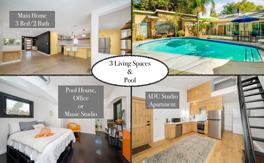 Beautifully updated single-level home featuring: Bright open floor plan Polished concrete floors Large windows and abundant natural light Remodeled kitchen with grand island + 36" chef's stove Spacious primary suite with slider to the pool area Seamless indoor outdoor flow with two oversized sliders Outdoor Living Sparkling pool with outdoor shower Removable pool safety fence (store or reinstall as needed) Fenced front yard with usable outdoor space Great layout for relaxing, hosting, or outdoor enjoyment Detached Studio Approx. 200 sq ft A fully separate flexible space featuring: Full bathroom Kitchenette Private entry Perfect as an office, studio, gym, workspace, or guest retreat (non-bedroom). Garage ADU Approx. 400 sq ft A versatile converted space offering: Full kitchen with 24" electric stove Full bathroom Loft area suitable for storage, meditation, or light-use activities Independent entry Ideal for a dedicated workspace, creative suite, or project room. Three Independent Flex Spaces This property offers: A full 3-bedroom home A fully equipped ADU A detached poolside studio with bathroom A rare combination in Los Angeles, perfect for anyone who values privacy, flexibility, and separate areas for work, creativity, or guests. Location Situated in a quiet, well-kept Northridge neighborhood conveniently close to: CSUN Shopping Cafes & dining Parks & recreation Major commuter routes Schedule a Tour Homes with this much flexibility and functional space are extremely hard to find in the Valley. Contact us today to see this exceptional property in person.