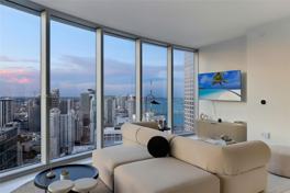 Virtual Tour Available. Most spacious 1 bedroom unit offered fully professionally furnished. Gaggenau and Bosch Appliances Through Out. 1 Year - Renewable. Sky Residence. Located 1 Floor Below Amenities. Semi Private Elevator. Only 3 Neighbors On Floor. 1000MBPS Internet By MultiTronik LLC - Perfect for working from home. Black out shades in bedroom. Built out closets. Sheer shades in living room.