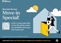 $1K OFF FIRST MONTH'S RENT IF YOU MOVE-IN PRIOR TO OCTOBER 15TH!
