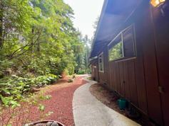 Welcome to a truly idyllic Northern California property. Walk down a manicured, park-like path to the primary entrance of this lovely home. On the main floor, enjoy a large kitchen with a garden window, beautiful wood cabinets, tiled countertops, and updated, high-quality appliances. The home features large skylights, solar tubes, and wood trim throughout. Off the kitchen, the sizable dining area flows seamlessly through an arched transition into the spacious living room, which boasts beautiful wood paneling, a stone fireplace, and built-in shelving. The large 2-car garage, which houses the washer and dryer, is also accessible from the dining area.
