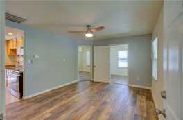 This impeccably maintained 4-plex offers an outstanding living experience! Lower Unit features two bedrooms and one bath, along with covered parking for added convenience. Enjoy a 10x8 storage shed, an outdoor BBQ area complete with a gazebo, table, and chairs. The downstairs units are equipped with mini-split systems for efficient cooling. Kitchens boast stainless steel appliances, while bathrooms feature upgraded showers and vanities. The home also includes vinyl plank flooring, tile in the kitchens, and new double-pane windows in the living room and bathroom for improved insulation and energy efficiency. Each unit is approximately 600 Square Feet.