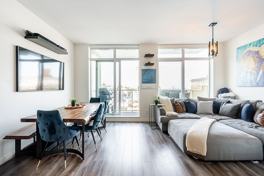 Welcome to this spacious unfurnished townhouse at The Independent in Vancouver East’s Mount Pleasant. This home features 3 large bedrooms, 2.5 bathrooms, and a stunning rooftop patio with breathtaking views of the city, mountains, and ocean. Inside, enjoy 9-foot ceilings, central A/C, and wide-plank flooring throughout. The kitchen is equipped with integrated appliances, including a double-door fridge/freezer. This home also includes 1 parking spot and a huge private storage room. The building offers fantastic amenities such as a full gym, party room, BBQ area, workshop, dog run, and wash station.
