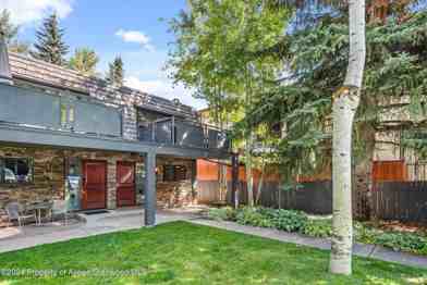 Located in the heart of downtown Aspen, 124 E Durant 1 is a beautifully remodeled, two-level, three-bedroom end-unit townhome offering abundant natural light and coveted views of Aspen Mountain. Refined interiors feature custom cabinetry, rich Brazilian hardwood floors, crown molding, a wood-burning fireplace, and a NanaWall system that seamlessly blends indoor and outdoor living. The kitchen is outfitted with premium paneled Wolf and Sub-Zero appliances, ideal for both everyday living and entertaining. The primary suite, complete with an ensuite bathroom, is privately situated on the upper level. Two additional bedrooms and a shared bathroom are located on the main level, with both bathrooms finished in timeless travertine floors and walls. All bedrooms are appointed with luxury Frette linens. The bedding configuration includes two king beds and a twin bunk room with a trundle.