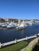 Escape to paradise and sunshine this winter in this waterfront 2 bedroom, 2 bath condo and enjoy your morning coffee on your 4th floor balcony with views of the intracoastal and marina. Sunsets views await. Newer kitchen with granite countertops, stainless steel appliances, oversize laundry room/study, Dining area, living area, sleeper sofa. All new mattresses. Landlord includes WiFi & Electric up to $100 a month, water/sewer. The Marina at the Bluffs Intercoastal Property offers pools, community room, tennis/pickleball courts,BBQ grills, Bocce Cts, and parking