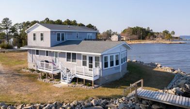 Fully Furnished 3-bedroom, 1 loft, 2 full bath home on the Pasquotank River in Glenn Cove. This home is available for weekly rental or short-term rental. Offers a spacious open concept with a kitchen (range/oven-electric, refrigerator, dishwasher), living room, dining area, sitting area, utility room with washer/dryer and garage. Enjoy your morning coffee or evening cocktails while taking in the serene beauty of the surrounding nature. Wake up in the primary suite and not even have to get out of bed to enjoy the view or step out onto the balcony and embrace all that nature has to offer. Bring your fishing gear and your water toys because there is plenty to do! NO Pets, NO Smoking