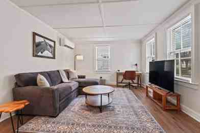 ***Available for move-in starting November 5th*** Experience a piece of Saratoga here at this newly updated horse stable themed first floor 2 bed/ 1 bath, 800ft² Saratoga Stay by Green Springs. Positioned in the heart of downtown, walkable to downtown or the Saratoga Race Course, this location, easily accessible to the best Saratoga has to offer, can't be beat. Just a convenient few steps from the parking lot will find you at the entrance of this first floor unit. We have carefully outfitted the space with all of the accommodations you'll want or need for relaxing, cooking, dining, sleeping, bathing, working or web surfing. •Laundry -shared/on site •Fully outfitted kitchen •Towels/linens provided •Shared furnished front porch •Work from home accommodations •Coffee, groceries, movies, dining a few short blocks. •NONsmokers Strictly! •3 person Occupancy max •Laundry -shared/on site •Fully outfitted kitchen •Towels/linens provided •Shared furnished front porch •Work from home accommodations •Coffee, groceries, movies, dining a few short blocks. •NONsmokers Strictly! •3 person Occupancy max NEIGHBORHOOD: This property is ideally positioned between a quiet neighborhood on the backside and the invigorating bustle of Saratoga from the front. Mere blocks of easy walking to either Saratoga's race course or downtown Broadway's shopping, dining, parks and nightlife. Given the downtown location there is potential for related audible noise. Complimentary earplugs available to accommodate guest preference. BEDROOMS: For sleeping there are two bedrooms each outfitted with a Queen bed with plentiful pillows and warm cozy seasonal layers. KITCHEN/ DINING: For meal time there is a kitchen table for 4 complete with place settings, plentiful bakeware and cookware as well as a shared outdoor grill for a wide variety of culinary prep wants and needs. BATHROOM: For bathing there is a beautiful newly renovated subway tile full tub/shower bath stocked with beauty care basics and plentiful bath linens. RELAXATION: For indoor relaxation you'll find board games along with Smart TVs powered by free high speed internet, complete with basic cable loaded with streaming services apps ready for personal login access. OUTDOORS: For outdoor enjoyment there is a grill stored in the back for use in our shared outdoor space. LAUNDRY: Property shared coin laundry room available for use during your stay. GUEST ACCESS: This is a multi unit property. Each individual apartment has its own private secure entry. The entire unit is yours and in no way accessible to any other building occupants. PARKING: ●1 off-street parking space ●Free on-street parking UTILITIES: Flat $225/Month fee ONE TIIME FEES: $250 cleaning fee