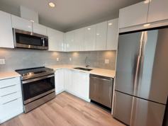 • Custom cabinetry is complemented by engineered stone countertops, sleek polished chrome pulls, and under-cabinet lighting