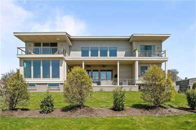 "Island Breeze"-Newport's newest luxury waterfront rental. Aptly named, you can catch the coastal breezes off the patio while taking in the panoramic view. Modern new construction features clean lines, floor-to-ceiling windows, and neutral contemporary furnishings. East- and south-facing water views across Easton's Pond, Easton's Beach, and Newport's Cliff Walk with direct access onto the water via the Pond walkway. A cozy, second-floor den separates the suites with a large screen TV, water views, and privacy. 6 bedrooms available; the primary is a water view suite with a KING bed and deck; TWO additional suites with water views and decks, both with en-suite baths; one with a KING bed, another suite with 2 QUEEN BEDS, and a third suite with 1 QUEEN bed, while two additional bunk rooms offer more flexible sleeping options with a shared full bath.