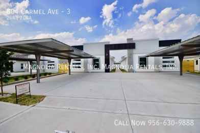 Introducing 804 CARMEL, a modern 2-bedroom, 2-bathroom apartment located in the vibrant city of Pharr, TX. This condo-quality unit features an open floor plan with vaulted ceilings, a spacious living room, and a master bedroom with a walk-in closet and en-suite bathroom. The kitchen is equipped with stainless steel appliances, including an electric stove/oven, refrigerator, and microwave, as well as modern fixtures. Central AC ensures year-round comfort, while covered parking and a private patio offer convenience and outdoor space. This gated property is pet-friendly with breed restrictions, and includes a washer and dryer in the unit. Tenants will enjoy the peace of mind of 24/7 maintenance support, with lawncare included. With a 12-month lease, this apartment is perfect for those seeking a stylish and comfortable living space in a convenient location. Tenant pays all utilities, and smoking is not permitted on the premises. Don't miss out on the opportunity to make 804 CARMEL your new home!