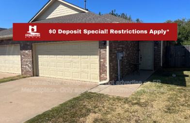 Discover this stunning 3-bedroom, 2-bathroom half-duplex with a 2-car garage in Edmond's Sunridge addition! The living room boasts beautiful wood-look flooring and a modern ceiling fan, while the kitchen features elegant granite countertops and a charming dining area, complete with a disposal, dishwasher, microwave, and gas cooktop. The primary suite offers wood-look flooring, a ceiling fan, a luxurious combination tub, and a spacious walk-in closet. This home also includes 2-inch blinds, interior utility, an inviting open patio, and a generously sized fenced backyard!