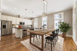 Vickery presents an exceptional end-unit townhome with elegant three-sided brick construction, 3 bedrooms and 3.5 baths, all just steps from the community's shops, dining, and amenities. Enter through the welcoming front door or the convenient two-car garage into a private lower-level bedroom suite complete with a full bath ideal for guests, teens, or a home office. Upstairs, a landing with a well-placed half bath leads into the main living level. The heart of the home is a spacious great room, featuring a beautiful fireplace flanked by custom built-ins. The open dining area flows naturally into the chef's kitchen, designed with a large island and breakfast bar, two pantries, stainless steel appliances, abundant white cabinetry, and gleaming granite countertops. From the living area, step out onto the balcony, a perfect spot for morning coffee or evening relaxation. The upper level hosts the expansive owner's suite, offering a luxurious bath with double vanities, a soaking tub, and a generous walk-in closet. A second private ensuite bedroom and a well-appointed laundry room complete this floor. Hardwood floors extend throughout the main and upper levels, enhancing the home's warmth and sophistication. Located in one of the most picturesque communities in the region, Vickery offers an unmatched live-work-play lifestyle with 75 acres of green space, six tennis courts, six pickleball courts, a resort-style pool with cabanas, two fishing ponds, walking trails, a brand-new playground, outdoor basketball court, fire pit, and a robust calendar of community events.