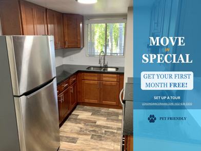 Coming Available March 23rd, 2026! *MOVE IN SPECIAL! 1ST MONTH FREE WHEN SIGNING A 13 MONTH LEASE OR AN 18 MONTH LEASE!* THIS IS A SECOND FLOOR UNIT THE CARLTON — GREAT VALUE • LARGE FLOOR PLAN • IN-UNIT WASHER & DRYER PLEASE ONLY INQUIRE IF YOU MEET THE FOLLOWING REQUIREMENTS: -No Smokers -No Crimes Against Children -No Evictions or Bankruptcies Within 60 Months of Application Date -Household Income of 3x the Monthly Rent is Needed. Proof of Income is Required -Acora Asset Management LLC Processes Full Credit & Criminal Background Checks on All Applicants & Complies With All Fair Housing Laws Take A Virtual Tour! : https my matterport com show ?m=7T1qu3MEo7X ABOUT THE PROPERTY Prime Arcadia location close to dining, entertainment, shopping, and major freeways—everything Arcadia has to offer at a great value. UNIT FEATURES -Ceramic wood-look tile flooring -Stainless steel appliances -New kitchens with custom quartz countertops -Custom tiled bathroom shower -In-unit washer & dryer -Air conditioning -Spacious bedroom and living room COMMUNITY AMENITIES -One assigned parking space -Sparkling pool -On-site laundry facility PET POLICY -Pet-friendly community -$25/month -One-time $150 pet fee -Pet charges are flat, not per animal -Limit is up to 3 pets UTILITIES -Residents responsible for SRP Electric -Utility Reimbursement: $65/month (Water, Sewer, Trash) *MOVE IN SPECIAL! 1ST MONTH FREE WHEN SIGNING A 13 MONTH LEASE OR AN 18 MONTH LEASE!* LEASE TERMS & PRICING -Rent: $995 -Security Deposit: $500 (On Approved Credit/ Application) -Application Fee: $65 per applicant -Resident Services Charge: 2% of Monthly Rent -Renters Insurance is Required -Lease Terms: 12, 13, or 18 Month Leases For further information, please call our office at 602-638-3300 or view our listing on our website: AcoraAM. com Offered by Acora Asset Management, LLC Designated Broker: Colin Ralls Now Accepting Applications!