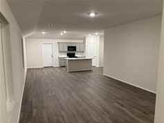 welcoming covered entryway and front yard landscaping. This one-story home features 4 bedrooms and 2 bathrooms. Enjoy the large open-concept living room, fully equipped kitchen with energy-efficient appliances, ample counterspace, and corner pantry. The laundry room, conveniently located just off the garage, is perfect for any sized family