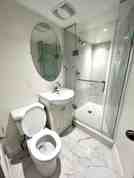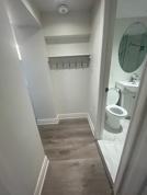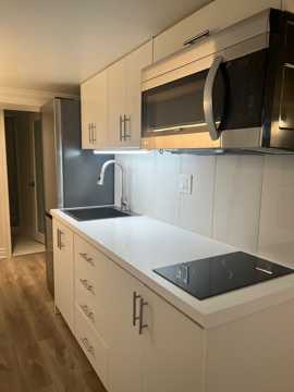 LIVE IN THIS NEW, BRIGHT, CLEAN, BACHELOR BASEMENT UNIT with outdoor space. The unit boasts hardwood flooring, nice lighting, and new windows. A brand-new kitchen awaits with full-size, stainless-steel fridge and microwave and a two burner convection cooktop.