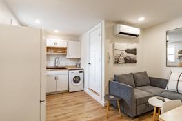 This unit has a well-designed layout featuring an open kitchen, living room and dining area - perfect for entertaining or simply relaxing. The separate bedroom is comfortable with an abundance of natural light. With high-quality finishes and fixtures, including hardwood flooring and sleek countertops, this space exudes a sense of modern elegance.