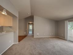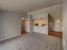 The apartment's vaulted ceilings add an elegant touch, creating an airy atmosphere that complements the overall design. A standout feature is the huge balcony accessible from the living area, offering a perfect spot for relaxing or entertaining outdoors. Inside, convenience is key with a washer and dryer included right in the unit, allowing for hassle-free laundry days. Additional storage space is also available, ensuring plenty of room for your belongings.