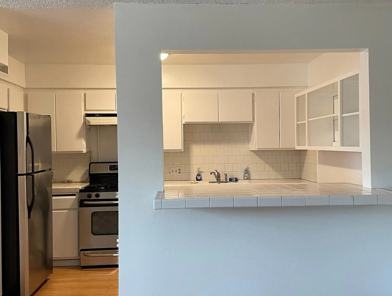 This two story 1 bedroom, 1.5 bathroom condominium apartment is located in Highland Park. The bedroom is designed as a second floor master suit, with its own full bathroom. The apartment includes a washer and dryer on the second floor. The living room has laminate flooring and a fireplace. The kitchen includes a stainless steel refrigerator and range. The kitchen and living room is also connected with a bar top counter.
